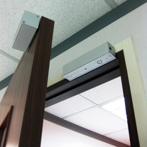 •可選購?fù)鈷旌?/span>(PG-B64) & 玻璃夾具(PG-DASTC-2)安裝于無框玻璃門。
